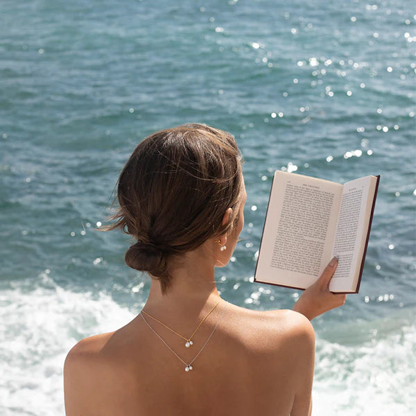 The Island Earrings feature a small Gold plated Sterling Silver hoop with two small freshwater pearls.